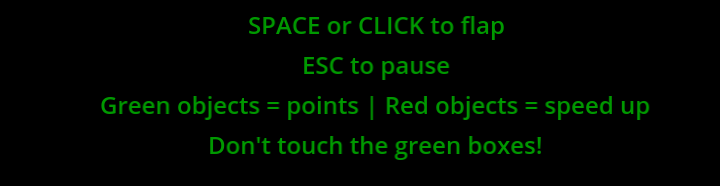 Hit space bar or click left mouse button to flap